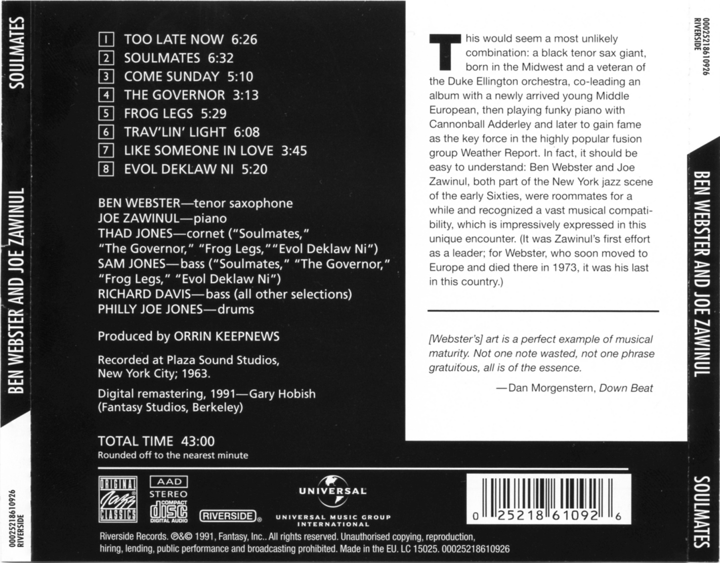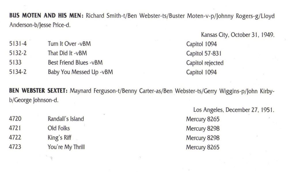 Im selben Jahr, 1959, nahm das Quintett mit dem Pianisten Jimmy Rowles, dem Bassisten Leroy Vinnegar und dem Schlagzeuger Mel Lewis auch “Gerry Mulligan Meets Ben Webster“ für Verve Records auf