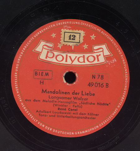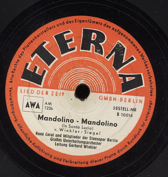 weitere Schallplatten dann Anfang der 50er Jahre für Regina (vertrieben in der Ostzone),