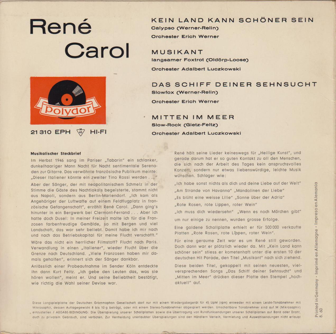 CAROL, RENÉ (GERHARD TSCHIRSCHNITZ) * 11.04.1920 in Berlin, + 09.04.1978 infolge einer Krebserkrankung in Minden,