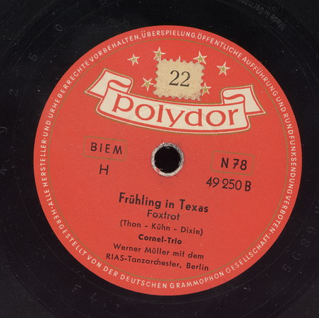 seit 1948 erste Schallplattenaufnahmen zunächst als CORNI-TRIO, in langen Sitzungen erscheinen Schallplattenaufnahmen für bis zu elf Titeln nacheinander,
