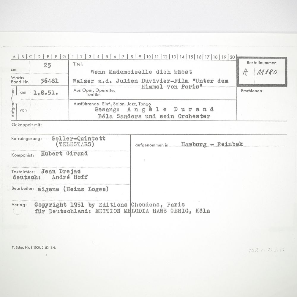 Nov. 1951 Ich Hab’ Nach Dir Soviel Heimweh (Gaze-Rotter)