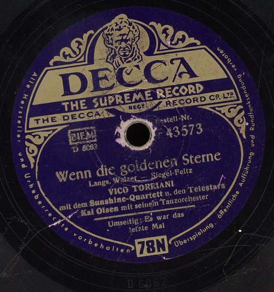 TELESTARS, Die (Das CORNEL-TRIO), Studio-Gesangensemble seit 1951, Decca (u.a. "Am Kap Der Guten Hoffnung"/"Besetzt (Busy Line)"-1951, "Liebe Ist Ja Nur Ein Märchen"-1951 & VICO TORRIANI u. GITTA LIND, "Arme Kleine Marina" & RENÉ CAROL, weiterhin Begleitgesang bei MARGOT HIELSCHER-1952, LALE ANDERSEN-1952, GINA TOSTI-1956, ROLF SIMSON-1956 u.v.a.m.), ab 1951 Telefunken (u.a. "Von Meiner Braut Träum' Ich Am Liebsten", "Was Halten Sie Vom Wetter?", weiterhin Begleitgesang bei ANGÈLE DURAND-1951, EVELYN KÜNNEKE-1956, HORST WINTER-1957 u.v.a.m.), ab Frühjahr 1953 kombinierte Gesanggruppe Die/Das SUNSHINES o. SUNSHINE-QUARTETT o. SUNNIES o. 4 SUNNIES und Die TELESTARS auf Decca (u.a. "Bella, Bella Donna" & VICO TORRIANI) u. Telefunken, seit 1956 Veröffentlichungen auch auf Amiga
