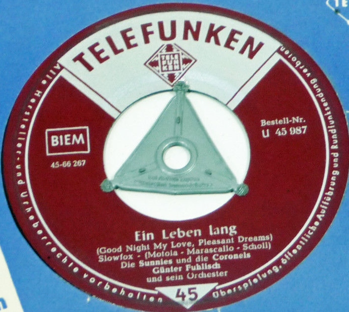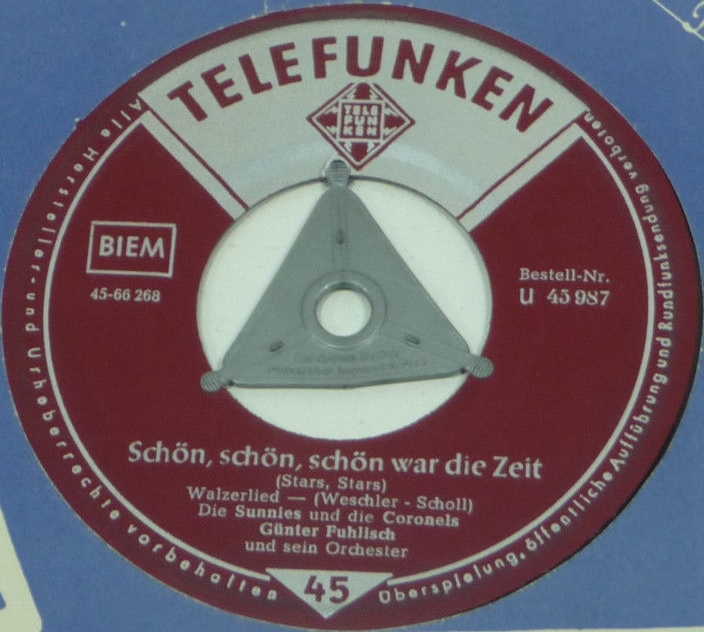 SUNNIES & Die CORONELS, Gesang, 1957-60 unzählige Aufnahmen auf Decca (u.a. "Peter, Komm' Heut' Abend Zum Hafen (Green Door)", "Die Fontänen Von Rom (By The Fountains Of Rome)"/"Ich Sage Dir Adieu ..! (Just Walking In The Rain)" & GITTA LIND, "Amigo Mio"/"Ein Blondes Mädel" & PAUL SCHRÖDER u. viele viele mehr), Telefunken U 55151 ("Die Liebe War Zu Jeder Zeit-parodistisches Fugato/Fuge in Stereo" & Die CORONELS u. Die VAGABUNDEN/"Tschiko, Tschikola (Why Wait?)"-1959), LP Jodelfox 1294