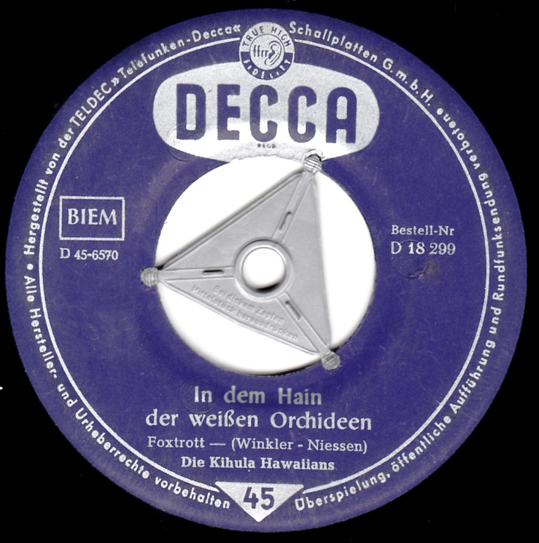 Hawaii- und Südsee-Romantik war in den 50er Jahren ein beliebtes Thema in der Schlagermusik und schließlich hatte so gut wie jede Plattenfirma ihre "Hawaii-Gruppe".