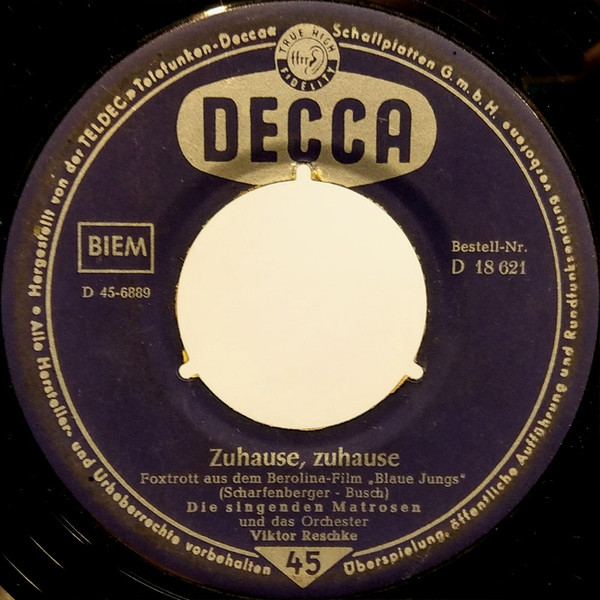 09 57....D 18 621....Die singenden Matrosen und das Orchester Viktor Reschke..Zuhause, zuhause/Die Benicarlos und das Orchester Viktor Reschke..Der weiße Mond von Maratonga