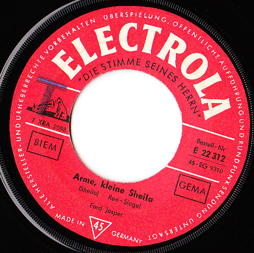 hallo forum heute eine fred jasper single mit zwei coverversionen seite 1 arme kleine sheila seite 2 leah die beiden titel sind auf der electrola 22312 erschienen die original sänger sind tommy roe und roy orbison keep rockin' albert