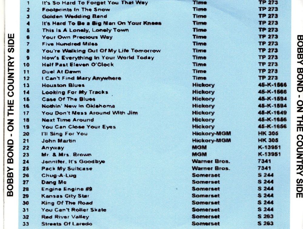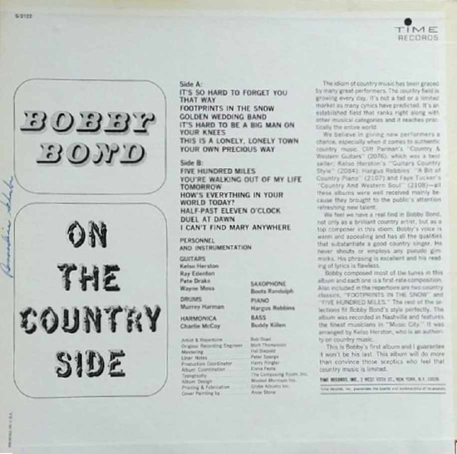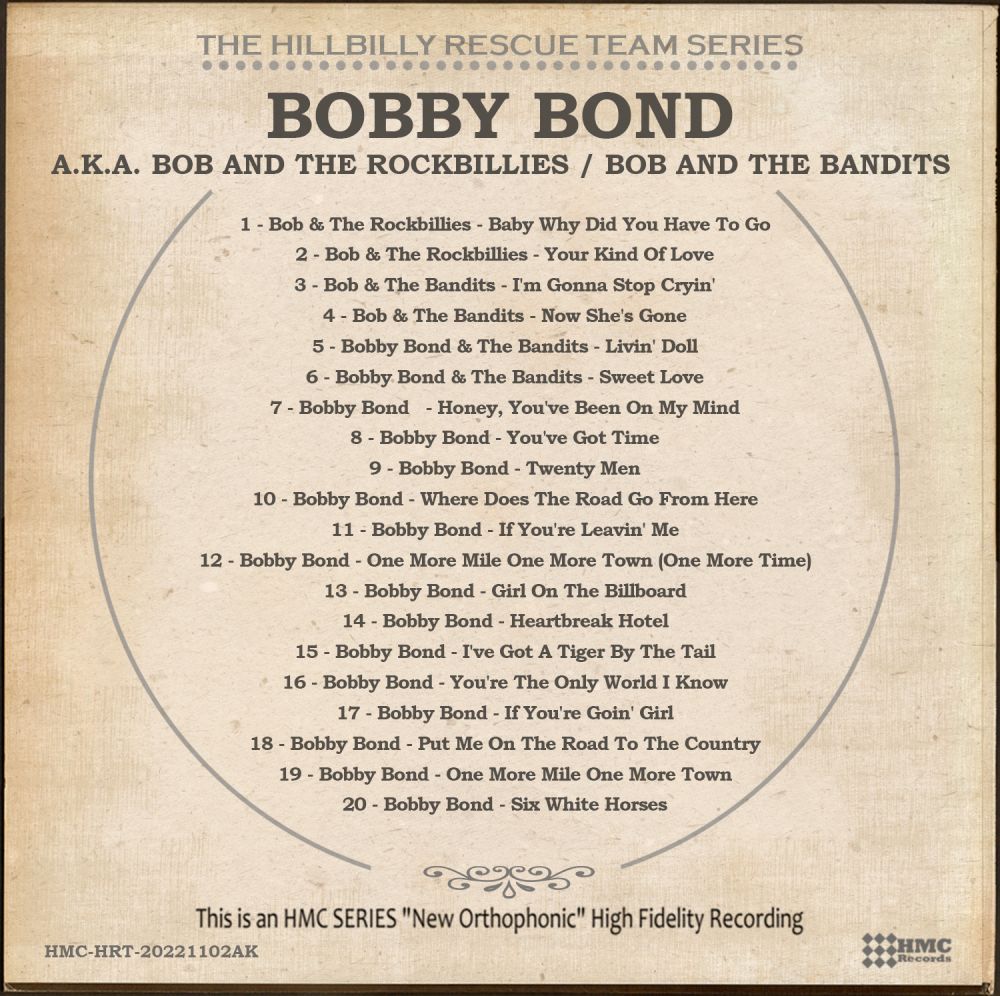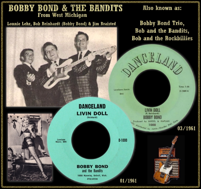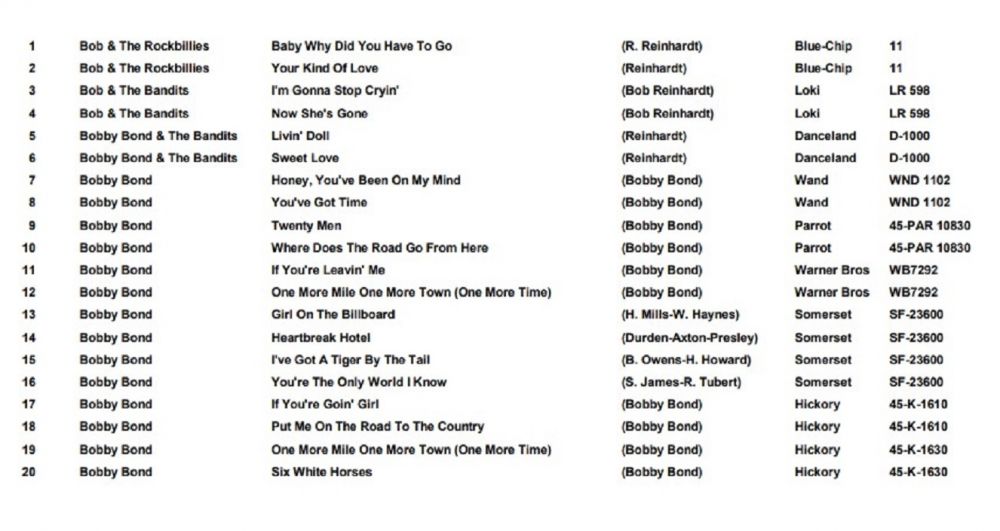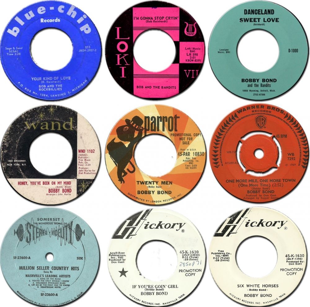 Detaillierte biografische Daten konnte ich über Bob Reinhardt nicht herausfinden. Er dürfte in der Musik-Szene ab der Fünfziger-Jahre tätig gewesen sein und ist es vielleicht noch immer. Die wenigen Singles die er unter diversen Pseudonymen veröffentlichte dürften so nebenbei, möglicherweise hobbymäßig, entstanden sein. Der Sammler-Gemeinde ist er unter anderem als Bobby Bond bekannt schon alleine wegen der dreifachen Ausgabe dieser Bobby Bond-Single
