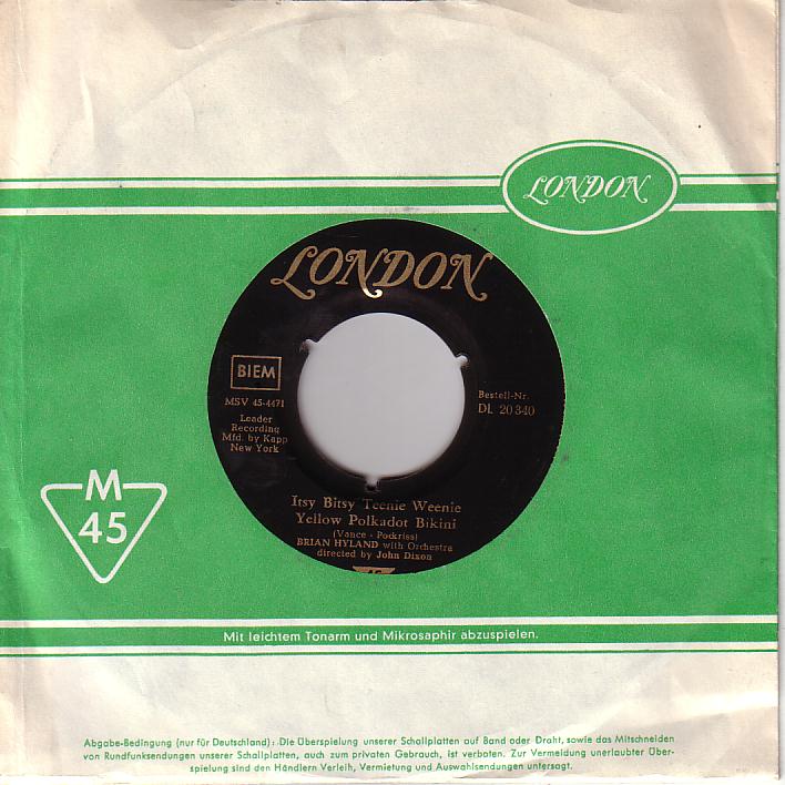 Brian Hyland - LONDON DL 20340 ( 1960 ) im Firmenlochcover
