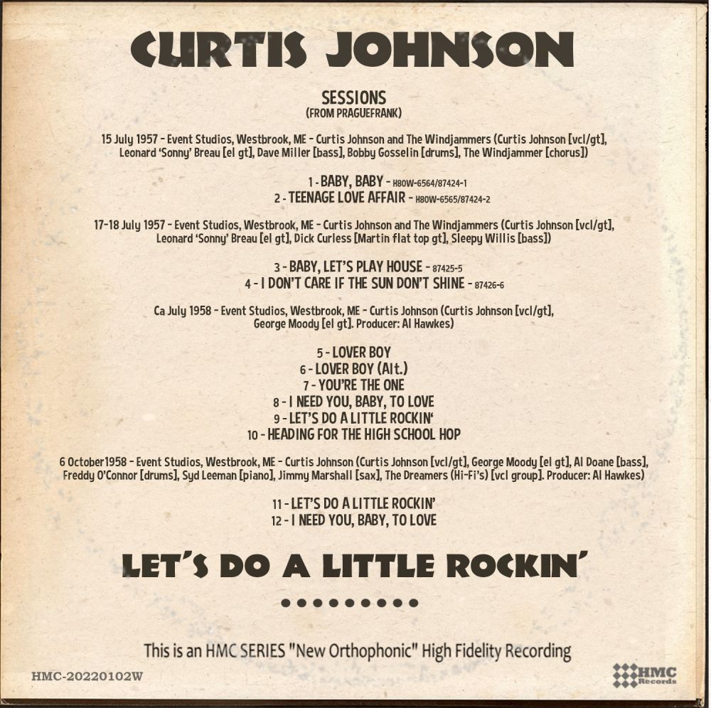 Curtis Johnson wurde 1934 in Bradley, Alabama, geboren. Schon früh sehr musikinteressiert und talentiert lernte er im Laufe der Zeite Klavier, Saxophon, Schlagzeug und Gitarre. Sein musikalisches Vorbild war Elvis Presley. 1956 durfte er bei Al Hawkes' EVENT-Label mit Sitz in Westbrook, Maine, seine ersten Aufnahmen einspielen. Nicht ganz überraschend nahm er die Elvis-Titel "Baby Let's Play House" und "I Don't Care If The Sun Don't Shine" auf. Hawkes hielt aber die Veröffentlichung dieser Aufnahmen aus unbekannten Gründen zurück. Erst im Herbst 1957 gab es die vermutlich einzige regulär veröffentlichte Single die im Billboard vom 16. September 1957 angekündigt und besprochen wurde. Die weiteren Aufnahmen aus dem Jahre 1958 dürfte Al Hawkes ebenfalls nicht verwertet haben.