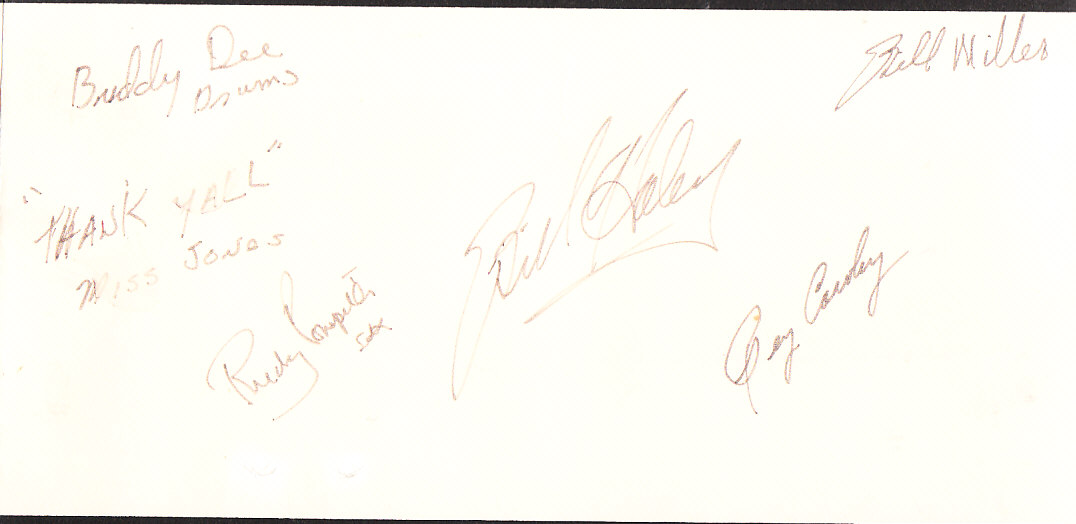 hallo forum habe ein konzertplakat von bill haley weiss aber nicht von wann.da rudy pompilii unterschrieben hat muss es vor 1976 sein links oben steht ICO presents im unteren drittel bill haley & his comets von bill nur der kopf in verschiedenen grauschattierungen mi schwarzer brille unten eine handbreit weiss darauf die unterschriften von bill und der band.eine unterschrift von einer MISS JONES habe über sie nichts gefunden bitte um eure mithilfe wenn möglich keep rockin' albert um die autogramme zu vergrößern darauf klicken