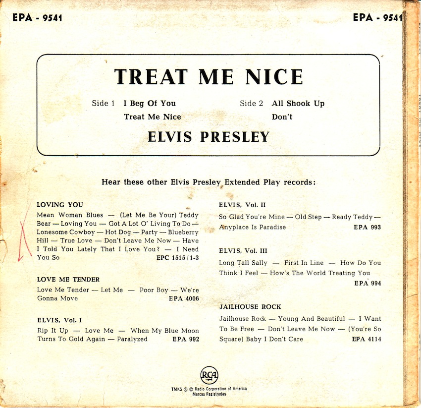 | Information: | ELVIS PRESLEY TREAT ME NICE RCA EPA 9541 25.03.1958 |
