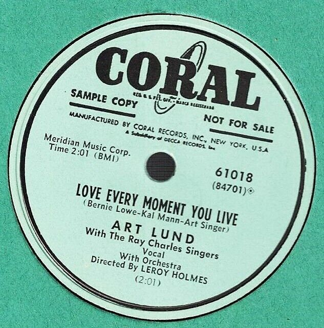 07 53....9-61018....ART LUND With The Ray Charles Singers Vocal With Orchestra Directed By LEROY HOLMES..Crying In The Chapel (45-84700)/Love Every Moment You Live (45-84701)