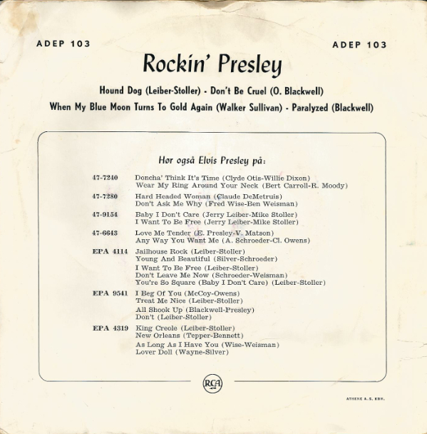 | Titel: | ELVIS PRESLEY - DK RCA ADEP 103 B.jpg |