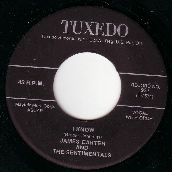 11 57....922....JAMES CARTER AND THE SENTIMENTALS..Hey, Baby, Hey (T 2573)/I Know (T 2574)