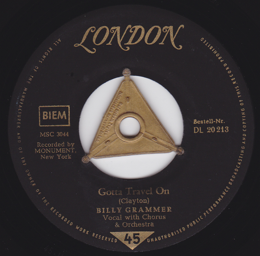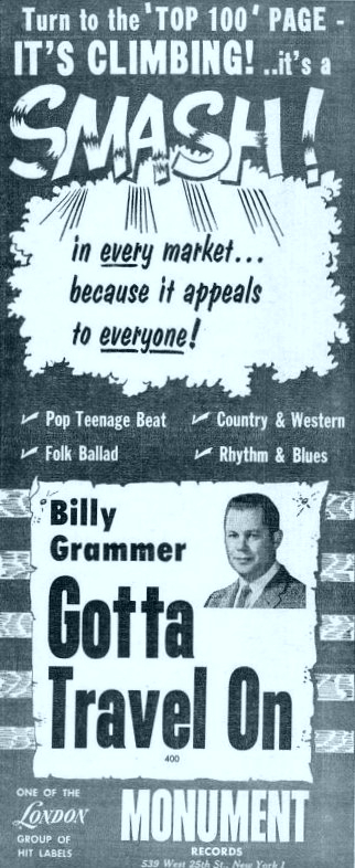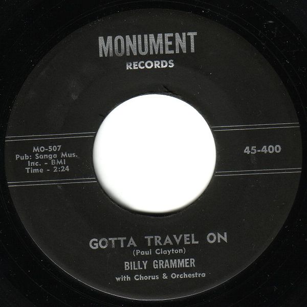01 59....DL 20 213....BIlly Grammer Vocal with Chorus & Orchestra..Gotta Travel On/Chasing A Dream (MONUMENT 400)