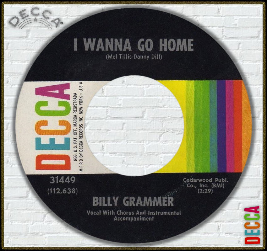 12 62....31449....BILLY GRAMMER Vocal With Chorus And Instrumental Accompaniment..I Wanna Go Home (112,638)/The Bottom Of The Glass (112,639)