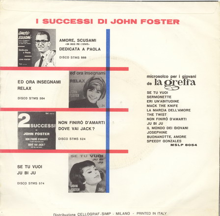 1965 u. 1966 Teilnehmer am Festival von San Remo-jeweils nicht für das Finale qualifiziert ("Cominciamo Ad Amarci"-1965, "Se Questo Ballo Non Finisse Mai"-1966),