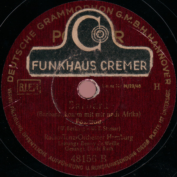 HORST FISCHER-tp-solo, FRITZ PETZ-tp, EGON KÜSTER-tp, HERBERT REICH-tp, LUDWIG FASSOLD-tp, ALBERT MANGELSDORFF-tb, ERNST STÄHR-tb, HEINRICH HOFMAN-tb, A. STOCK-HAUS-tb, HEINZ KRELL-as, ARTHUR KOPPERNOK-as, MENNO BOLDT-ts, PHILLIP RÖSSER-ts, WALDEMAR HELLBOURG-bars, LOUIS FREICHEL-p, WERNER DIES-g, RUDI WEGENER-b, BENNO SCHILLING-d