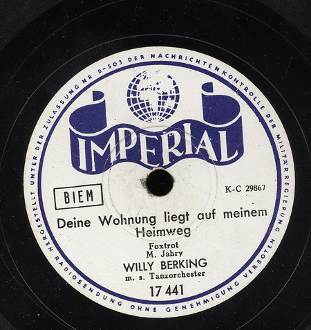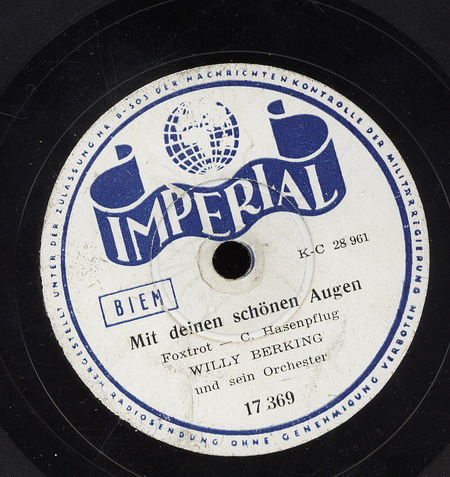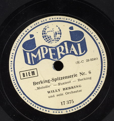 ab 1940 mit seinen Solisten o. mit seinem Tanzorchester auf Imperial (u.a. FRITZ PETZ-tp, KARL KUTZER-tp, KURT HOHENBERGER-tp, ALFREDO MARZAROLI-tp, WALTER DOBSCHINSKI-tb, WILLIBALD WINKLER-tb, b, BENNY de WEILLE-cl, as, KURT ABRAHAM-ts, cl, DETLEV LAIS-ts, cl, TEDDY KLEINDIN-as, cl, PRIMO ANGELI-p, auch TIP TISCHELAAR-p (1941), SERGE MATULL-g, MEG TEVELIAN-g, CESARE CAVAION-b, HARRY van DYK-d),