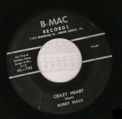 08 58....45—723....BOBBY MACK..Crazy Heart (45-723-A)/Waitin' For You To Call (45-723-B)