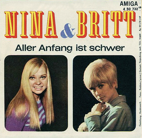 NINA & BRITT (NINA LIZELL & BRITT KERSTEN), Gesangsduo, 1969 Amiga 450732 ("Aller Anfang Ist Schwer" als NINA & BRITT/"Einmal In Der Woche"-CHRIS & FRANK)