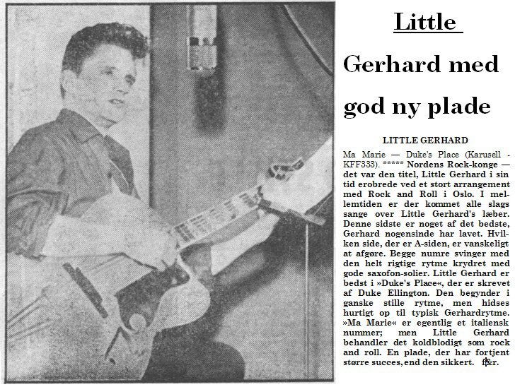 Bei Little Gerhard, der wohl zu den ganz Wenigen im deutschsprachigen Raum gehört (dass er Schwede ist tut da nichts zur Sache), der akzeptable deutsche Cover-Versionen ablieferte, ist es mir ein Bedürfnis darauf hinzuweisen, dass er mit "Juke - Box - Baby" auch einen der noch viel weniger vorhandenen echten deutschen Rocknroll-Titel, den ich mir ohne Gewissensbisse als solchen rein sound- und musikmäßig zu benennen traue, ablieferte (Text und Musik Peter Igelhoff mit Friedel Berlipp als Poll und Nils Nobach als Ström).