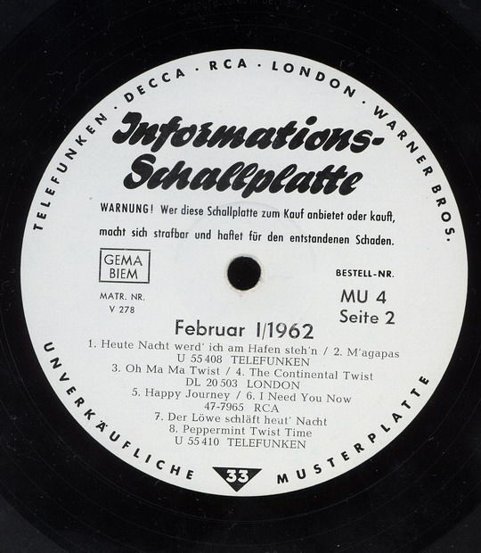 Telefunken U 55410 Der Löwe schläft heut nacht (The Lion Sleeps Tonight)/Peppermint Twist Time (Februar 1962; zwei Hüllenvarianten)