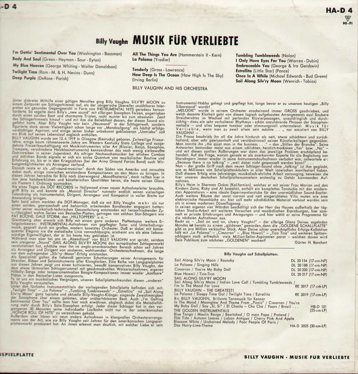 eine der für meinen Geschmacks schönsten Aufnahmen von Billy Vaughn ist Deep Purple von 1957.