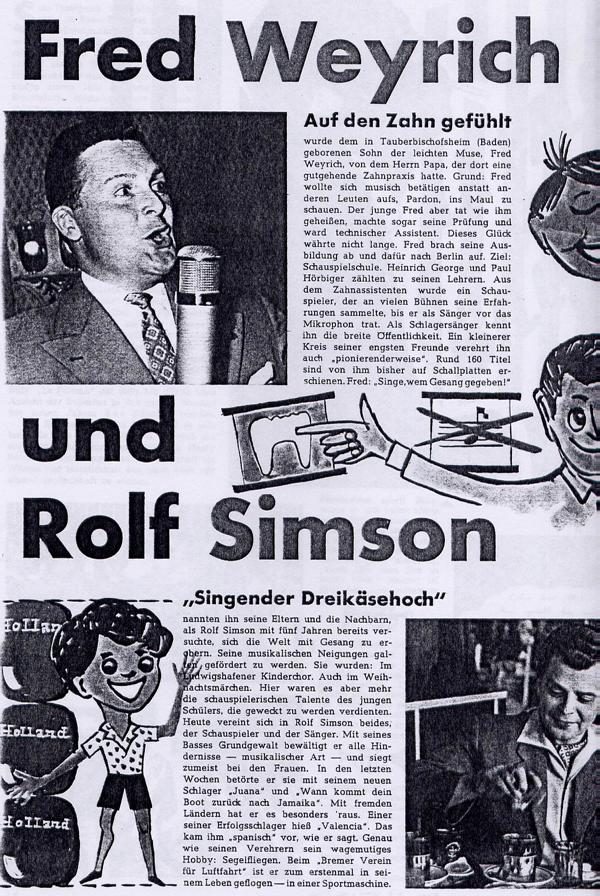 1958-61 Duo FRED und ROLF (mit FRED WEYRICH) auf Telefunken u. Philips,