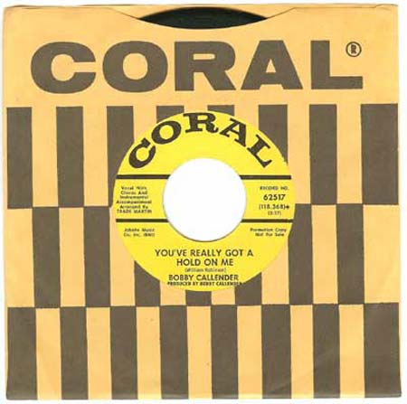 07 67....62517....BOBBY CALLENDER Vocal With Chorus And Instrumental Accompaniment..I Can't Get Over You (Ooh la la, la la) (118,370)/You've Really Got A Hold On Me (118,368)
