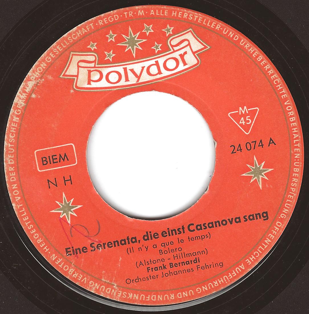 09 59....24 074 A....Frank Bernardi Orchester Johannes Fehring..Eine Serenata, die einst Casanova sang (Il n'y a que le temps)/ B....Silbermond