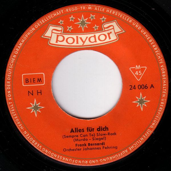 05 59....24 006 A....Frank Bernardi Orchester Johannes Fehring..Alles für dich (Sempre Con Te)/ B....So war es nie (Adorami)