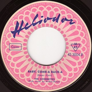 Original-Label: Cadence 1345, deutsche Matritzenherstellung F 8 ( Juni/1958), Composer von A : “Julius Dixon - Beverly Ross” und B : “Kaye - Carr”, Orch. Cond. By Archie Bleyer bei beiden Titeln, deutsche Platte auf rosa Label, Placierung Hitparade in den USA: „Lollipop“ 3/58, # 2 pop, # 3 r&b