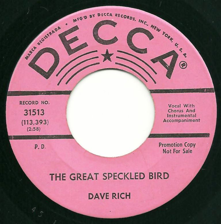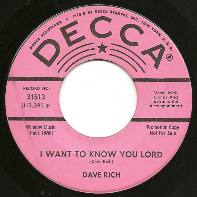 07 63....31513....DAVE RICH..I Want To Know You Lord (113,395)/The Great Speckled Bird (113,393)