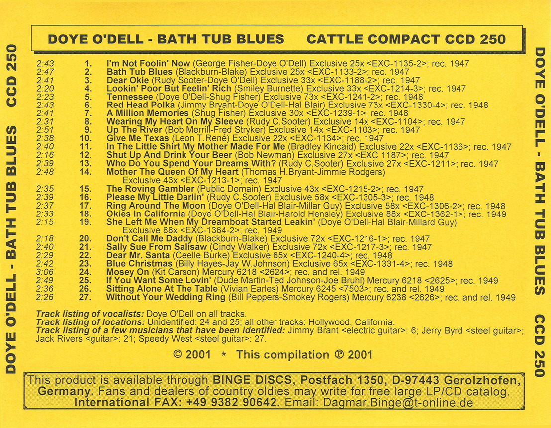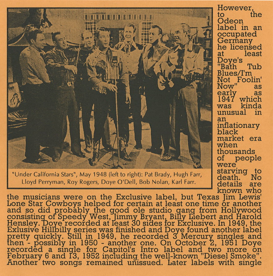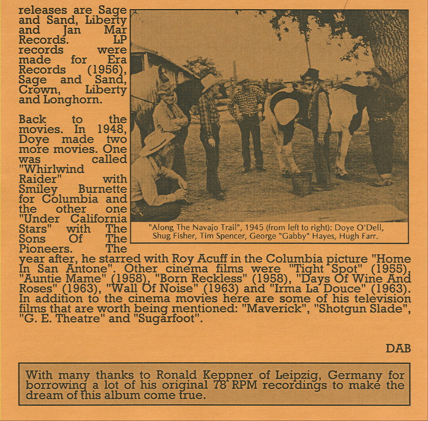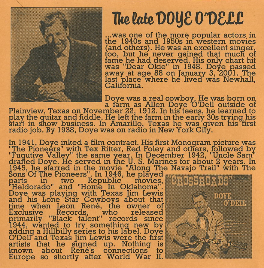 Der Country-Sänger und Gitarrist Doye O'Dell wurde am 22. November 1912 in Gustine, Texas, als Allen Doye O'Dell geboren und verstarb am 3. Jänner 2001 in Northridge, Kalifornien.