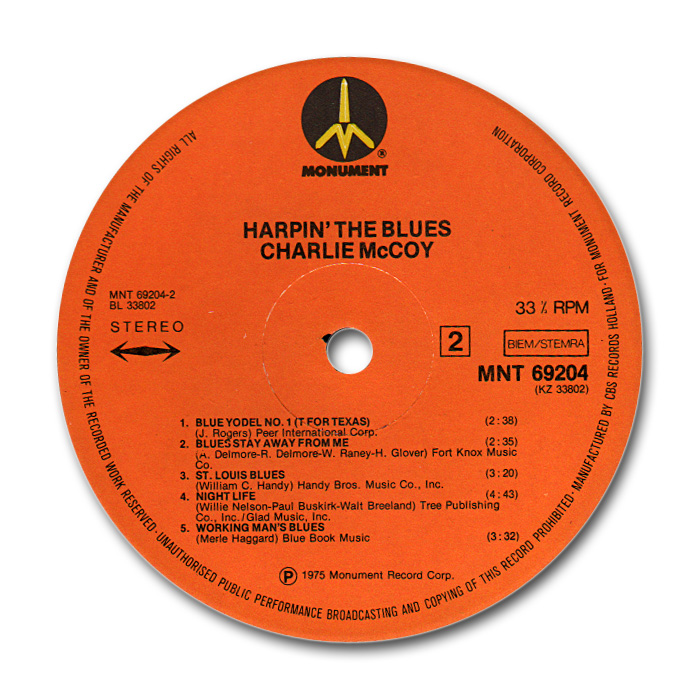 Die Firma CADENCE ist eine jener Firmen, die eine ganze Reihe von Pressanstalten (COLUMBIA-Customer, RCA-Customer, MONARCH mit Delta-Nummer etc., etc.) beauftragten und wo man auch immer wieder die skurrilsten Kombination findet. Dadurch gibt es auch sehr viele unterschiedliche Label-Designs. Meine Charlie McCoy-Neuerwerbung, die ich hier posten werde, ist so ein Extremfall. Auf beiden Seiten scheint zwar die newyorker COLUMBIA-Nummer (ZTSP) im Deadwax auf, aber einmal geritzt wie in Chicago (ZTSC) und einmal gestempelt und erhaben, vermutlich wie in Nashville (ZTSB). Auch das Logo unterscheidet sich von Uwe's obigen Scans. Als Abschluß folgt eine Single von Ann-Margret, wo Charlie McCoy's Mundharmonika