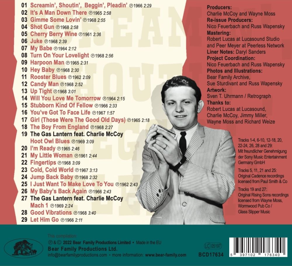 Der Session-Musiker Charlie McCoy (Gesang, Mundharmonika, Gitarre, Bass-Gitarre, Schlagzeug) wurde am 28. März 1941 in Oak Hill, West Virginia, als Charles Ray McCoy geboren. Die Familie zog später nach Florida, wo er mit einer von seiner Mutter geschenkten Mundharmonike, er war gerade acht Jahre alt, dieses Instrument bis zur Virtuosotät erlernte. Dann kam noch die Gitarre dazu und es folgten weitere Instrumente. Bereits in jungen Jahren gründete er eine eigene Rocknroll-Band, mit der er durch die Lande zog. Mit 18 Jahren ging er auf Anraten von Mel Tillis nach Memphis, wo er als Session-Musiker schnell Fuß fasste und bald darauf kam es auch zu seiner ersten Single-Veröffentlichung.