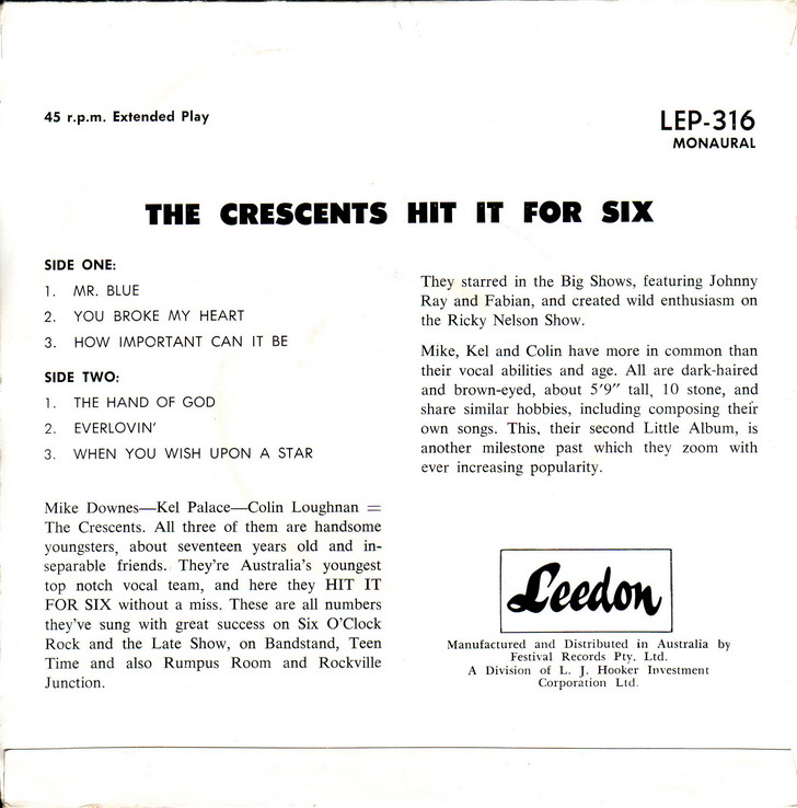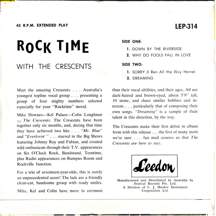 Die surfenden Crescents aus dem Jahre 1963 haben bereits ein Forum. Hier jetzt die singenden Crescents, die auch zeitmäßig etwas besser in diese Abteilung passen