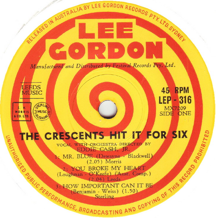 Die Umbenennung bei dieser Wiederveröffentlichung erfolgte wahrscheinlich aus kommerziellen Gründen, weil Vito Picone & Carman Romano - seinerzeit Mitglieder der "CRESCENTS" - zum Zeitpunkt dieser Wiederveröffentlichung Mitglieder der "ELEGANTS" waren. Auf VICTORY wurde wieder der Originalname verwendet