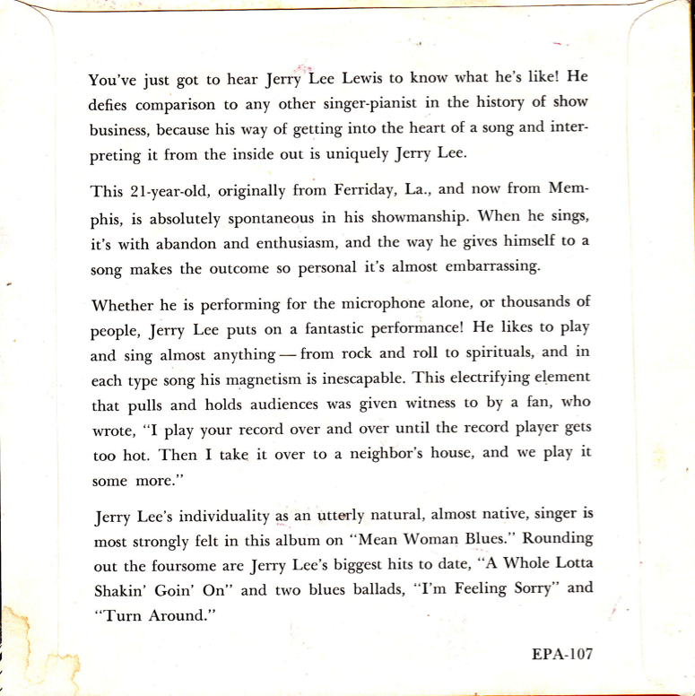 | Information: | SUN EPA-107 - JERRY LEE LEWIS |