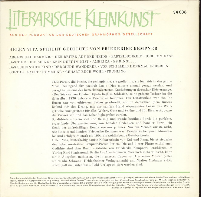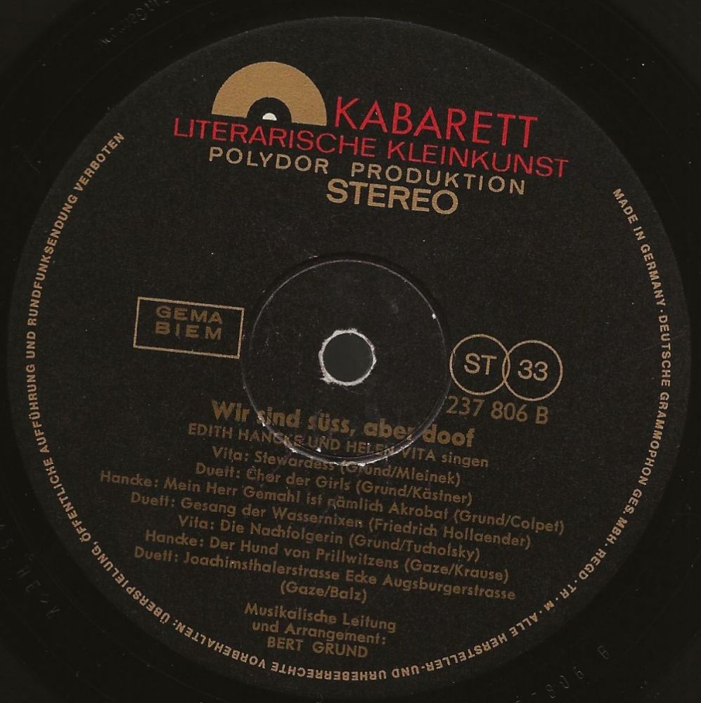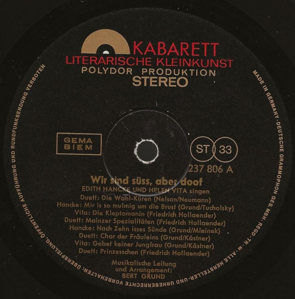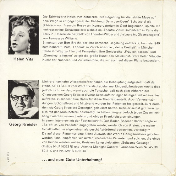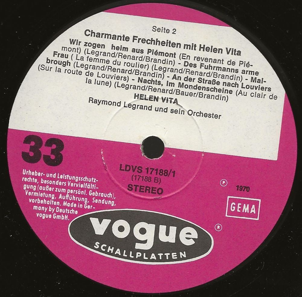 ab 1963 erscheinen nun Jahr für Jahr, mit geradezu preußisch inspirierter Präzision, eine LP nach der andern "Freche Chansons"-1963, "Noch frechere Chansons"-1964, "Die frechsten Chansons"-1965, "Die allerfrechsten Chansons"-1966, "Dolce Helen Vita 1"-1967 u. "Dolce Helen Vita 2"-1968,