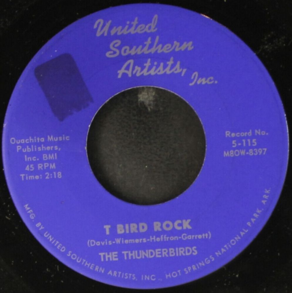 Kenneth “Gizz” Davis, Rhythmusgitarre, Darrell Wiemers, Leadgitarre, Jack Heffron, Bassgitarre, und Bob Garrett, Schlagzeug, waren vier junge Männer aus El Reno, Oklahoma, die sich im frühen Winter des Jahres 1961 trafen und beschlossen, eine Instrumentalband zu gründen, die sie dann The Thunderbirds nannten. Gizz Davis erledigte neben dem Gitarrespiel auch das geschäftliche der Gruppe und organisierte in den umliegenden Städten Auftritte, indem er Hallen mietete etc., und dabei unterstützte sie auch ein Disc-Jockey aus Oklahoma, als er sie zufällig entdeckte. Als Gizz bekannt wurde, dass in Hot Springs, Arkansas, ein neues Label gegründet wurde, machte er sich auf den Weg und schaffte es tatsächlich, mit UNITED SOUTHERN ARTISTS einen Plattenvertrag abzuschließen. Arkansas grenzt zwar im Westen an Oklahoma, aber so nahe ist Hot Springs in Arkansas auch wieder nicht. Jedenfalls reisten sie nach Hot Springs, Arkansas, um bei UNITED SOUTHERN ARTISTS Plattenaufnahmen zu tätigen was später dazu führte, das sie immer wieder mit den Thunderbirds aus Monette, Arkansas, verwechselt werden.