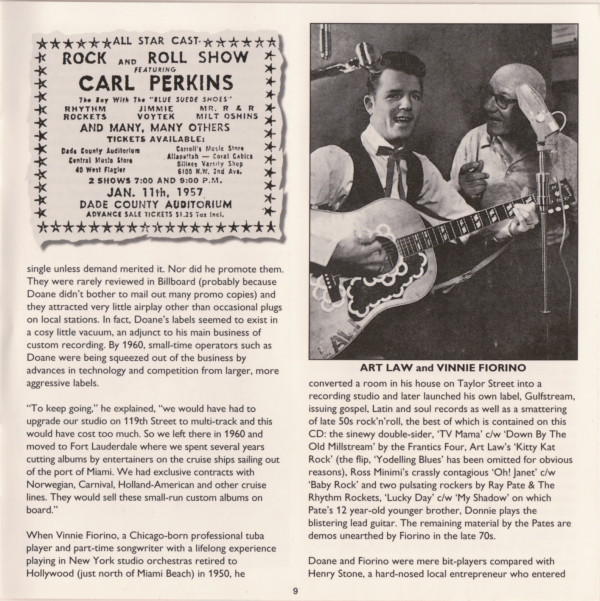 Der Songwriter ("Blue Canary" etc.), Tuba-Spieler (z. B. bei Paul Whiteman's Orchester) und Orchesterleiter Vince Fiorino gründete sich 1950, quasi als Geschenk zu seiner Pensionierung, das GULFSTREAM-Label, welches hauptsächlich als "Customer-Label" diente. In seinem Haus in der Taylorstreet in Hollywood, - nein! nicht in Kalifornien, sondern in Florida - richtete er sich dafür ein eigenes Studio ein. Am Beginn vertrieb er hauptsächlich Gospel- und Latin-Musik, änderte aber in den letzten Fünfzigerjahren sein Programm mehr auf Rocknroll und Rockabilly und da wurde er auch für uns Rocknroller interessant. Bis auf Jim Holt der mehrmals aufscheint, veröffentlichte er meist Singles von "Einzelkämpfern", wie beispielsweise Ross Minimi, die dann wieder verschwanden.