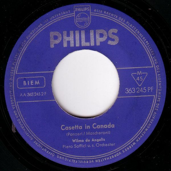 1957: Casetta in Canadà/A Venezia in carrozzella (Philips, 363 245 PF)
