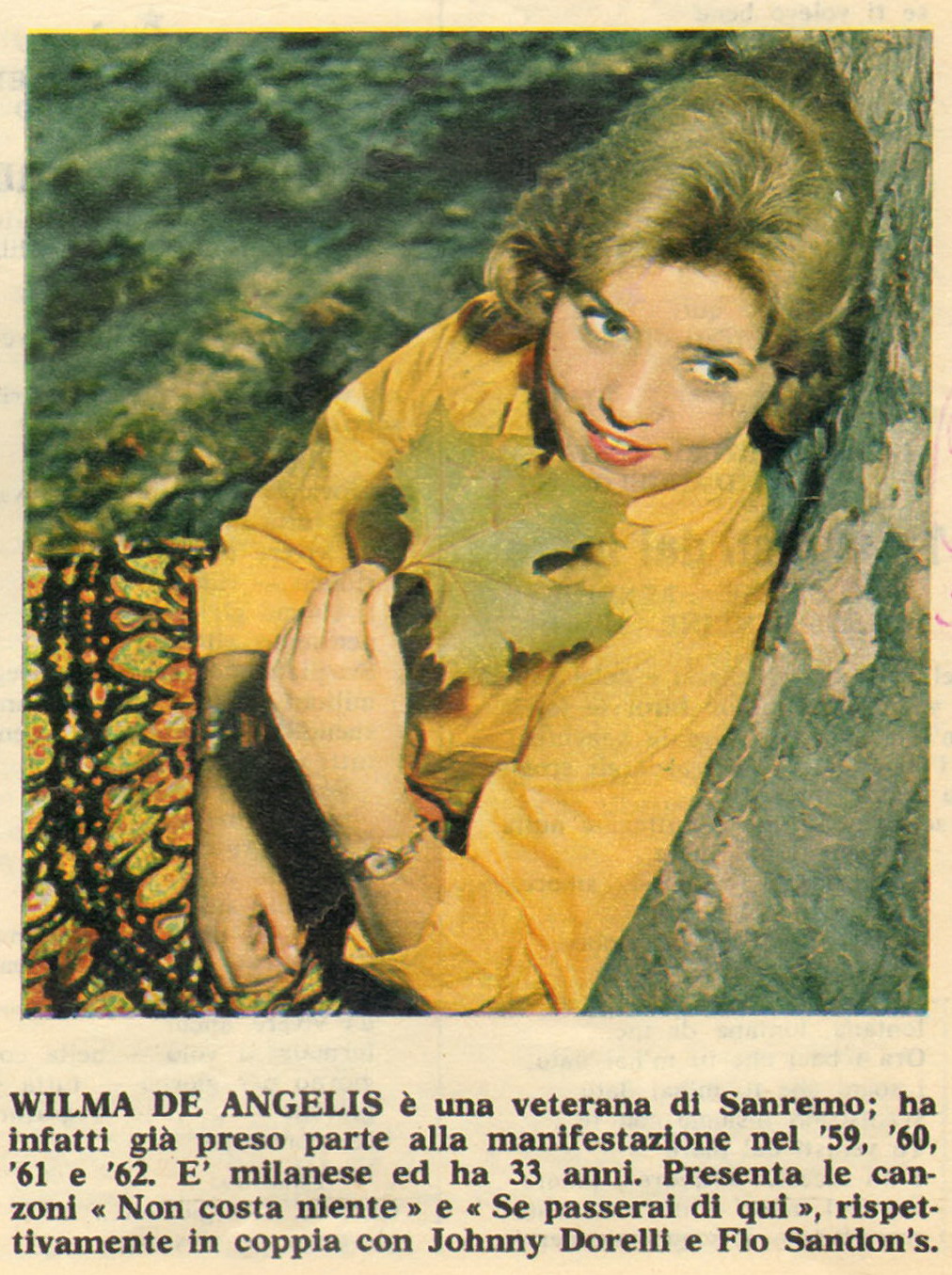 Wilma de Angelis 8.4.1931 in Mailand geboren, bisher ist sie hier in verschiedenen Jahren