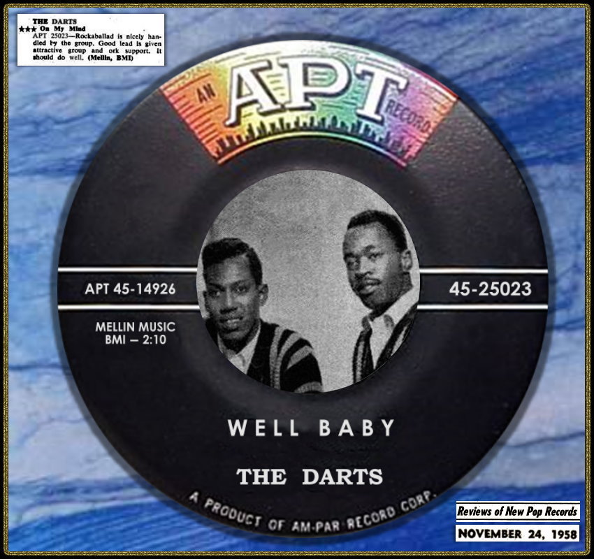 11 58....45-25023....THE DARTS..On My Mind (APT 45-15047)/Well Baby (APT 45-15048)