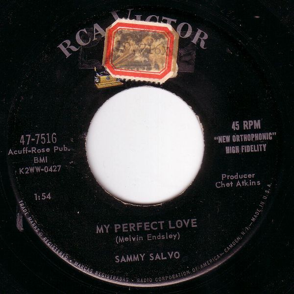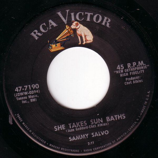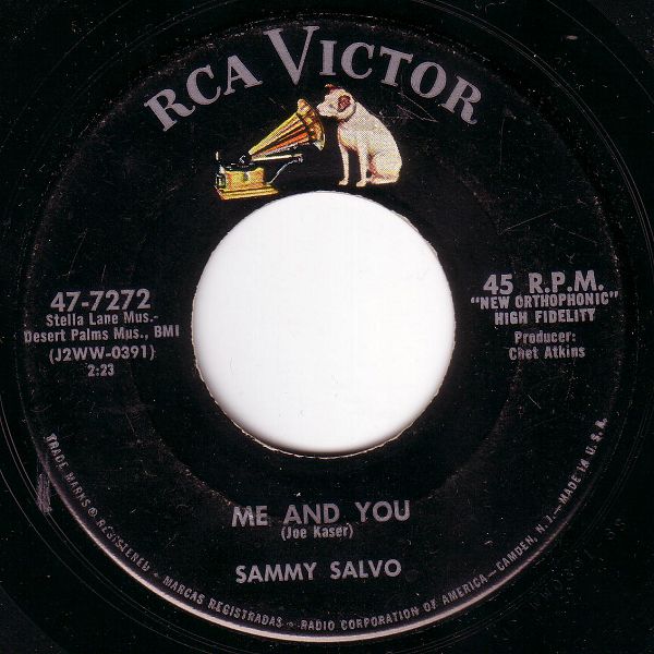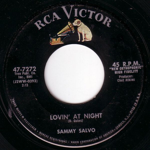 In late 1957, Sammy recorded 2 songs that he had written - “One Little Baby” and “Lonely Dreamer” - in Joe’s basement, which was one of the first places in Birmingham that had real hi-fidelity equipment for recording. Backing Sammy on this was the local session group called the Jubilaires, made up of Rick May, Kenny Wallis, and Henry Stellecki. These recordings were pressed under RCA’s custom pressing operation and released on the local Mark V label. Sammy’s brother George took off with a carload of the 45’s to Houston and went door-to-door hawking the record to all of the record shops and DJ’s. In the meantime, Mr. Rumore had sent Sammy to Nashville to meet Chet Atkins and play his demo tapes for him. Atkins liked what he heard, but told Salvo that he was full at the time of new breaking artists like Sammy, so Sammy headed back home. In the meantime, RCA was receiving word that Sammy’s record had sold 10,000 copies the first week of release in Houston; so the wise businessman Mr. Atkins decided to recall Salvo back to Nashville and immediately signed him to an RCA Victor recording contract.
