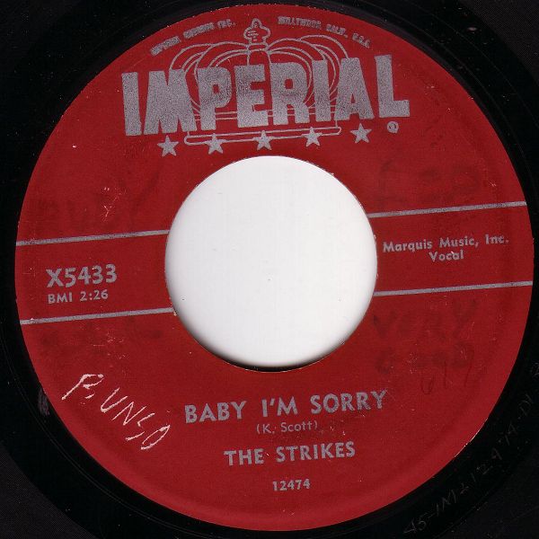 12 56….5006-45A….THE STRIKES Vocal by THE THREE PELVES..Baby I'm Sorry/-45B….If You Can't Rock Me (Delta-Nr.: 12474/75) (dann IMPERIAL 5433)