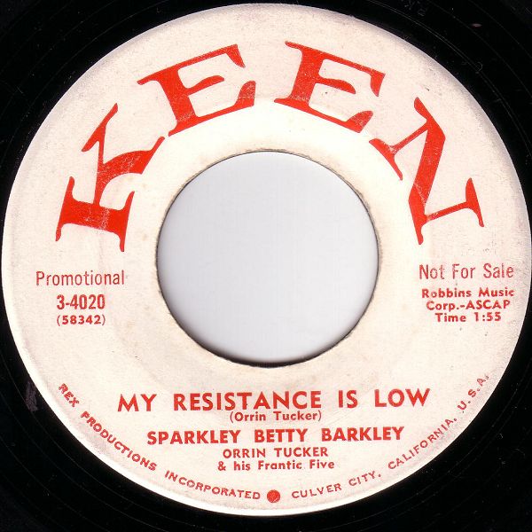 Also eine Dame, aber mit einer etwas knaufenden Stimme; vermutlich dürfte sie noch sehr jung sein. Trotzdem, die Begleitung von Orrin Tucker mit seiner Frantic Five macht alles wieder wett