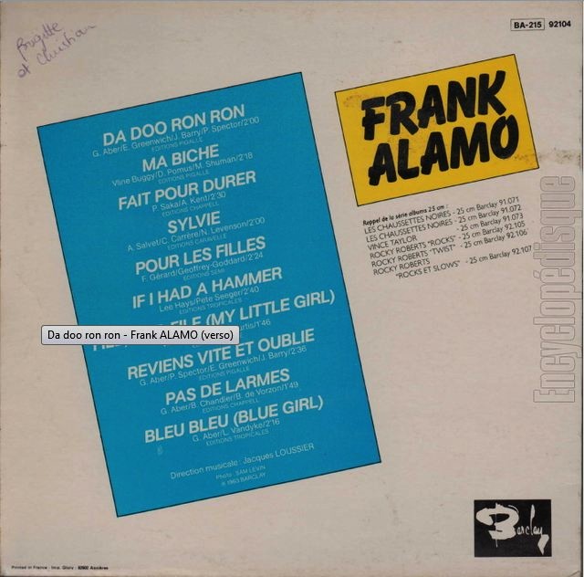 wie ich erst jetzt erfahren habe, ist der französische Sänger Frank Alamo auch dieses Jahr